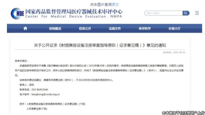 國家器審中心發(fā)布[射頻美容設(shè)備注冊審查指導(dǎo)原則(征求意見稿)]