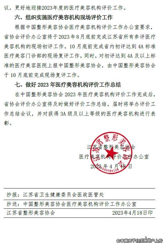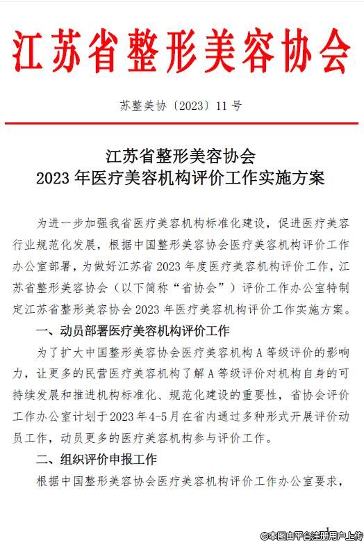 江蘇省整形美容協(xié)會2023年醫(yī)療美容機(jī)構(gòu)評價工作實(shí)施方案