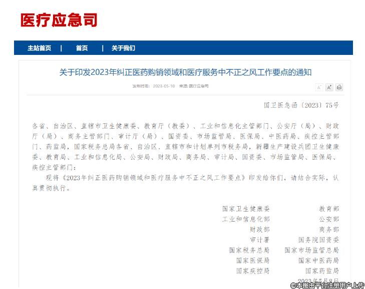近日,據(jù)國(guó)家衛(wèi)健委網(wǎng)站消息,國(guó)家衛(wèi)生健康委員會(huì)、教育部、工業(yè)和信息化部、公安部、財(cái)政部、商務(wù)部、審計(jì)署、國(guó)務(wù)院國(guó)有資產(chǎn)監(jiān)督管理委員會(huì)、國(guó)家稅務(wù)總局、國(guó)家市場(chǎng)監(jiān)督管理總局、國(guó)家醫(yī)療保障局、國(guó)家中醫(yī)藥管理局、國(guó)家疾病預(yù)防控制局、國(guó)家藥品監(jiān)督管理局等部委聯(lián)合印發(fā)了《2023年糾正醫(yī)藥購(gòu)銷領(lǐng)域和醫(yī)療服務(wù)中不正之風(fēng)工作要點(diǎn)》(以下簡(jiǎn)稱《工作要點(diǎn)》)。