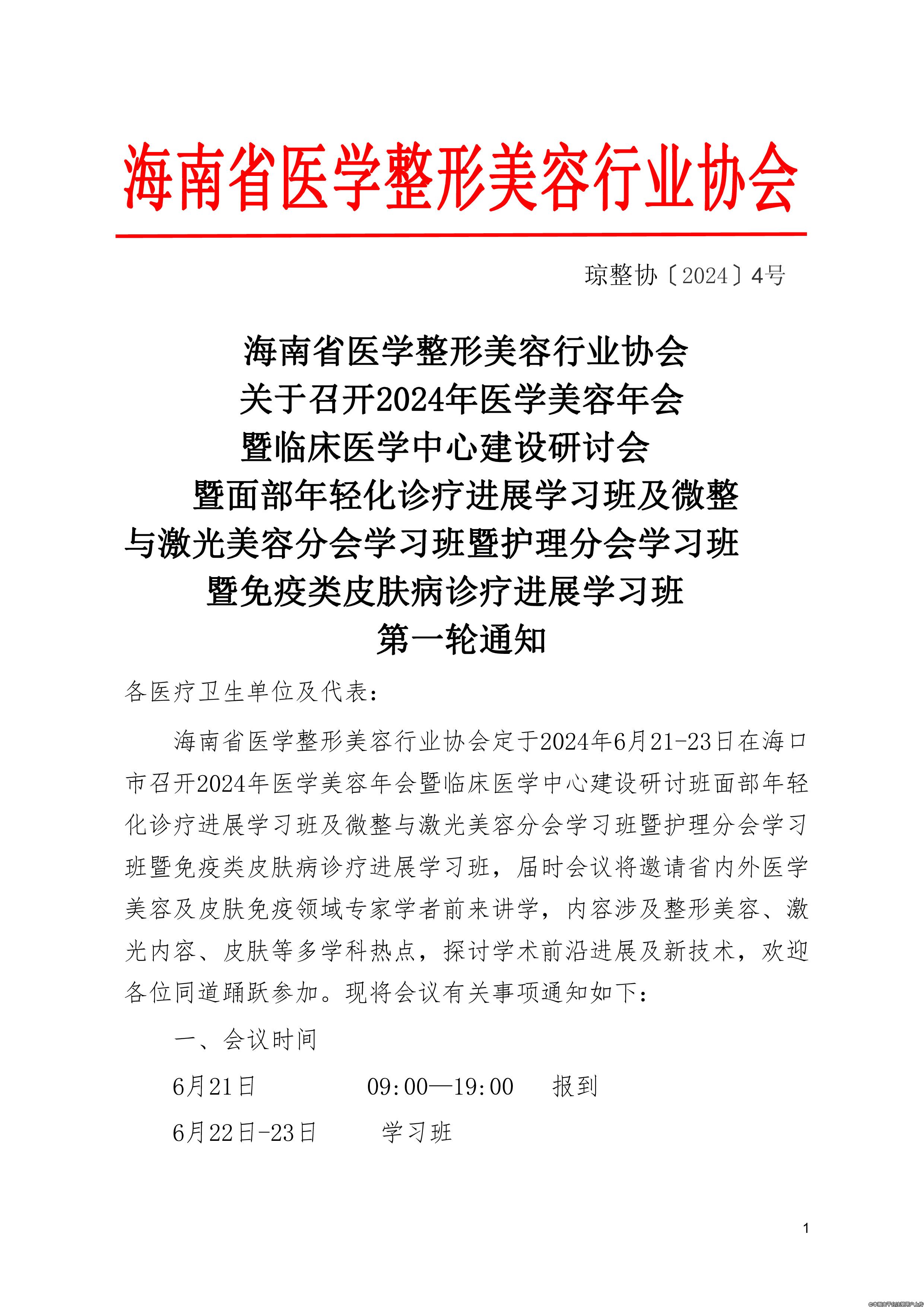 關(guān)于召開(kāi)2024年醫(yī)學(xué)美容年會(huì)