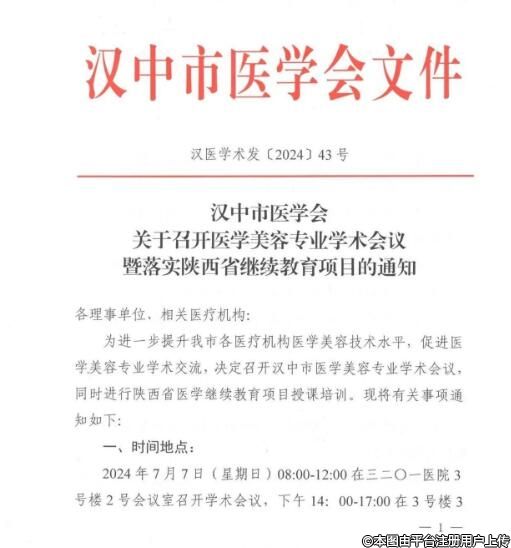 漢醫(yī)學(xué)術(shù)發(fā)〔2024〕43號 關(guān)于召開醫(yī)學(xué)美容專業(yè)學(xué)術(shù)會(huì)議暨落實(shí)陜西省繼續(xù)教育項(xiàng)目的通知