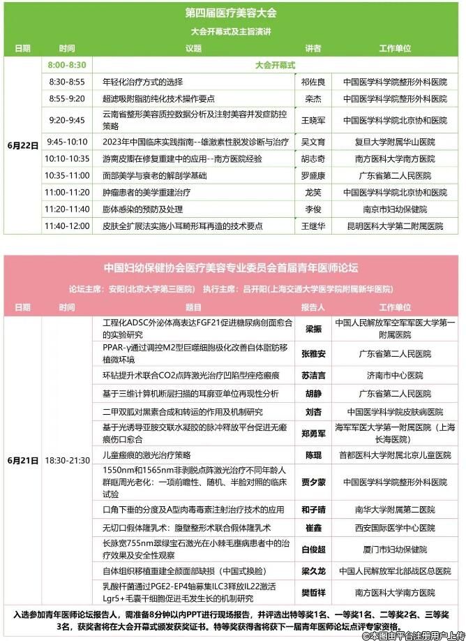 為了推動我國婦幼保健系統(tǒng)醫(yī)療美容學(xué)科的進(jìn)步,加強學(xué)術(shù)交流,建立多學(xué)科合作網(wǎng)絡(luò),經(jīng)過研究決定,中國婦幼保健協(xié)會醫(yī)療美容專業(yè)委員會計劃于2024年6月21-23日在云南省昆明市舉辦第四屆醫(yī)療美容大會。