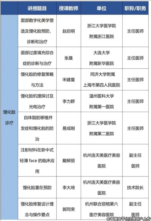 《抗衰老醫(yī)學(xué)(饅化臉)新技術(shù)新進(jìn)展學(xué)習(xí)班》課程表