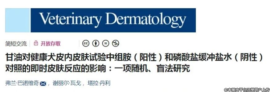 2023年發(fā)表了一項題為“甘油對健康犬皮內(nèi)皮膚試驗中組胺(陽性)和磷酸鹽緩沖鹽水(陰性)對照的即時皮膚反應的影響”的研究。