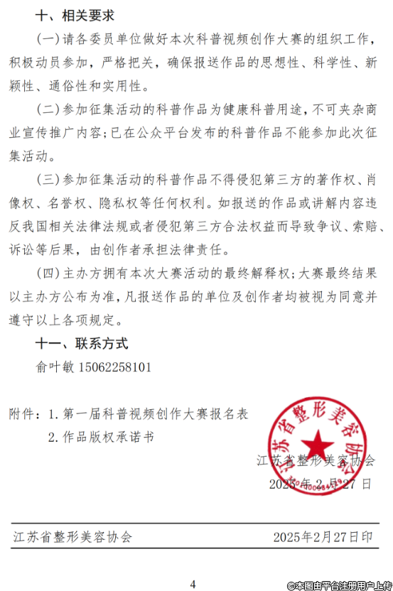關(guān)于開展江蘇省整形美容協(xié)會(huì)護(hù)理分會(huì)第一屆科普視頻創(chuàng)作大賽的通知