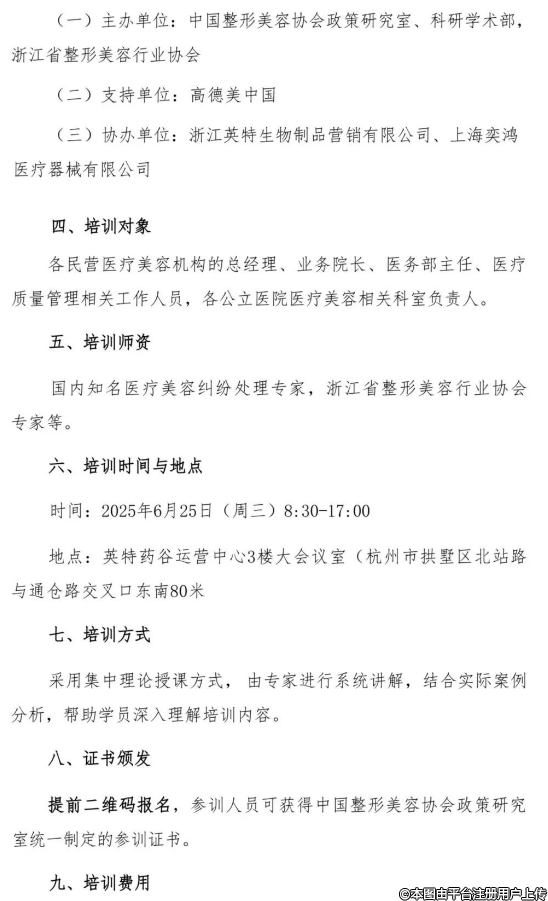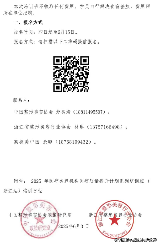 各醫(yī)療美容機(jī)構(gòu):為加強(qiáng)醫(yī)療美容機(jī)構(gòu)規(guī)范管理,促進(jìn)醫(yī)療美容機(jī)構(gòu)高質(zhì)量發(fā)展,中國(guó)整形美容協(xié)會(huì)聯(lián)合浙江省整形美容行業(yè)協(xié)會(huì)擬于6月25日在杭州舉辦”醫(yī)療美容機(jī)構(gòu)醫(yī)療質(zhì)量提升計(jì)劃系列培訓(xùn)班”?,F(xiàn)將第三期(浙江站)培訓(xùn)班通知轉(zhuǎn)發(fā)如下,請(qǐng)大家踴躍報(bào)名。本次培訓(xùn)班不收取任何費(fèi)用。