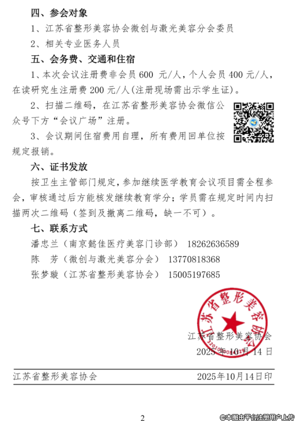 1、江蘇省整形美容協(xié)會(huì)微創(chuàng)與激光美容分會(huì)委員