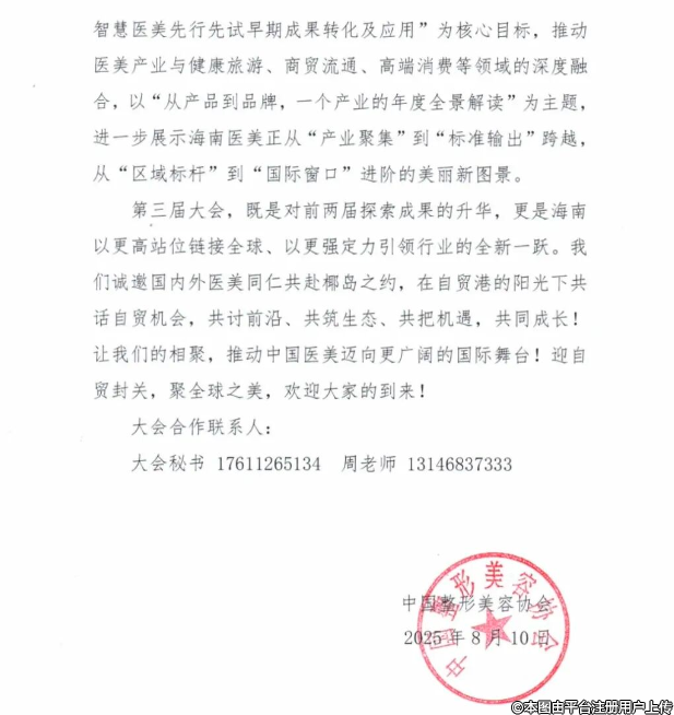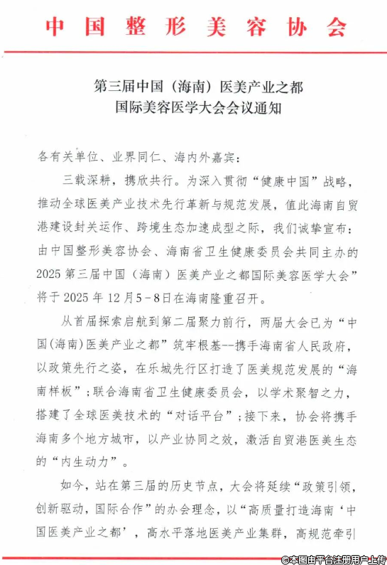 本次大會由中國整形美容協(xié)會、海南省衛(wèi)生健康委員會共同主辦。本次大會以“共享封關(guān)紅利,共創(chuàng)醫(yī)美未來”為主題,設(shè)立30多場論壇,旨在全方位探討海南封關(guān)紅利為醫(yī)美產(chǎn)業(yè)帶來的巨大時代機遇。