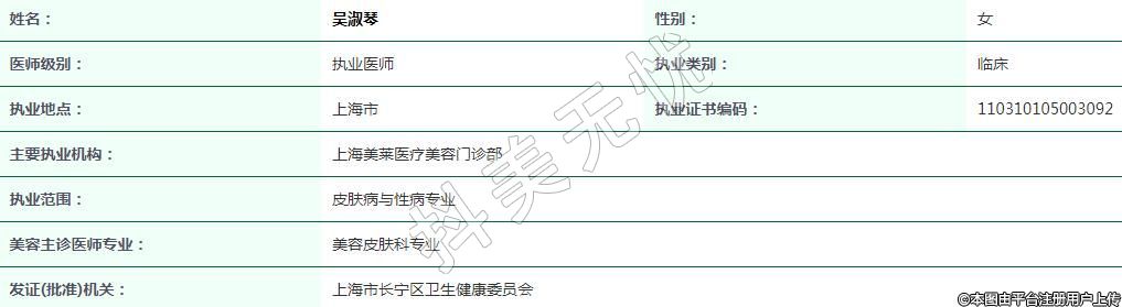 上海美萊醫(yī)療美容執(zhí)業(yè)醫(yī)師