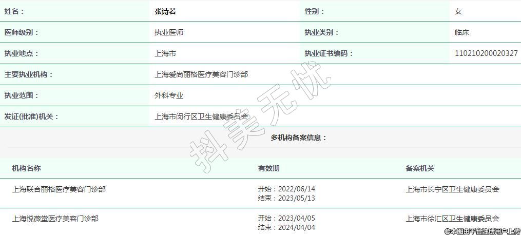 主要執(zhí)業(yè)機(jī)構(gòu):上海愛尚麗格醫(yī)療美容門診部