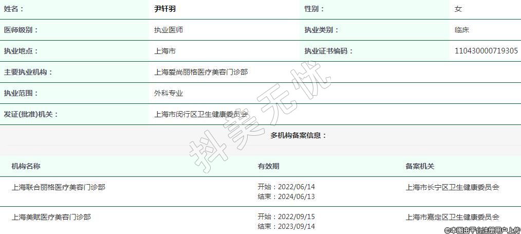 主要執(zhí)業(yè)機(jī)構(gòu):上海愛尚麗格醫(yī)療美容門診部
