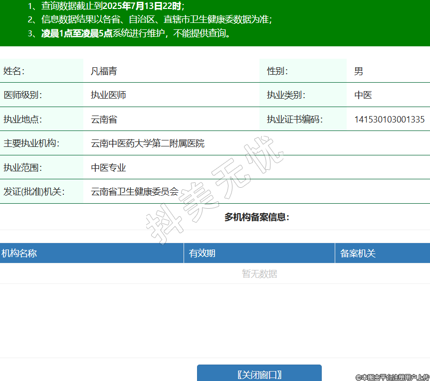 姓名:凡福青性別:男醫(yī)師級(jí)別:執(zhí)業(yè)醫(yī)師執(zhí)業(yè)類(lèi)別:中醫(yī)執(zhí)業(yè)地點(diǎn):云南省執(zhí)業(yè)證書(shū)編碼:141530103001335主要執(zhí)業(yè)機(jī)構(gòu):云南中醫(yī)藥大學(xué)第二附屬醫(yī)院執(zhí)業(yè)范圍:中醫(yī)專(zhuān)業(yè)發(fā)證(批準(zhǔn))機(jī)關(guān):云南省衛(wèi)生健康委員會(huì) -