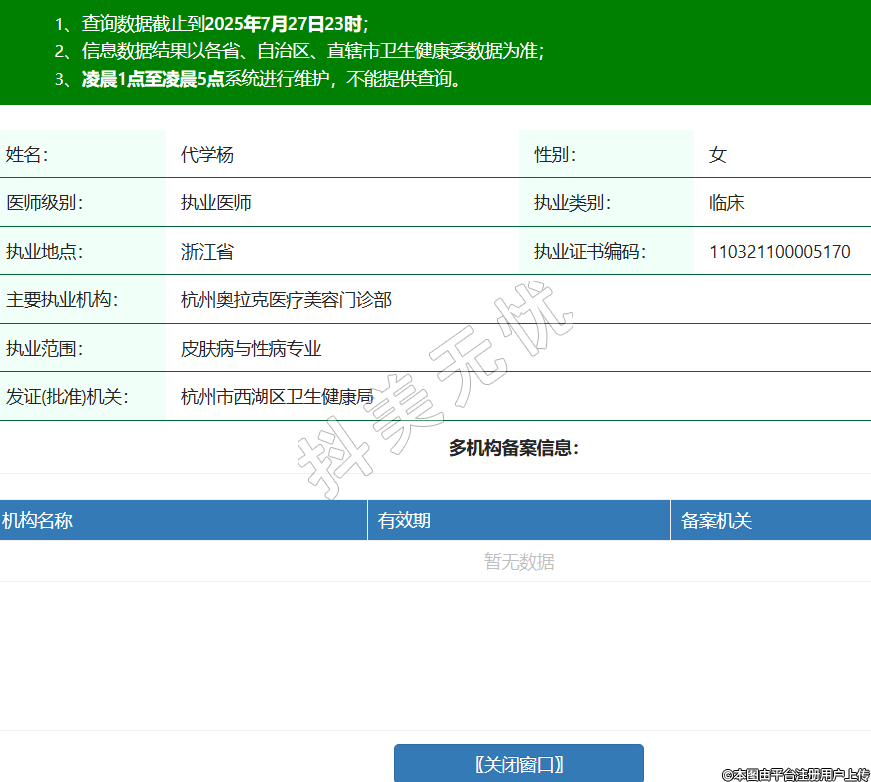 姓名:代學(xué)楊性別:女醫(yī)師級(jí)別:執(zhí)業(yè)醫(yī)師執(zhí)業(yè)類別:臨床執(zhí)業(yè)地點(diǎn):浙江省執(zhí)業(yè)證書編碼:110321100005170主要執(zhí)業(yè)機(jī)構(gòu):杭州奧拉克醫(yī)療美容門診部執(zhí)業(yè)范圍:皮膚病與性病專業(yè)發(fā)證(批準(zhǔn))機(jī)關(guān):杭州市西湖區(qū)衛(wèi)生健康局 -