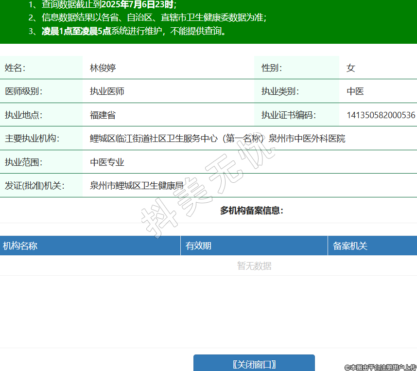 姓名:林俊婷性別:女醫(yī)師級別:執(zhí)業(yè)醫(yī)師執(zhí)業(yè)類別:中醫(yī)執(zhí)業(yè)地點:福建省執(zhí)業(yè)證書編碼:141350582000536主要執(zhí)業(yè)機構(gòu):鯉城區(qū)臨江街道社區(qū)衛(wèi)生服務(wù)中心(第一名稱)泉州市中醫(yī)外科醫(yī)院執(zhí)業(yè)范圍:中醫(yī)專業(yè)發(fā)證(批準)機關(guān):泉州市鯉城區(qū)衛(wèi)生健康局 -