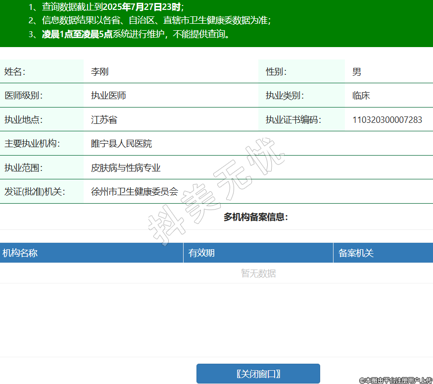 姓名:李剛性別:男醫(yī)師級(jí)別:執(zhí)業(yè)醫(yī)師執(zhí)業(yè)類別:臨床執(zhí)業(yè)地點(diǎn):江蘇省執(zhí)業(yè)證書編碼:110320300007283主要執(zhí)業(yè)機(jī)構(gòu):睢寧縣人民醫(yī)院執(zhí)業(yè)范圍:皮膚病與性病專業(yè)發(fā)證(批準(zhǔn))機(jī)關(guān):徐州市衛(wèi)生健康委員會(huì) -