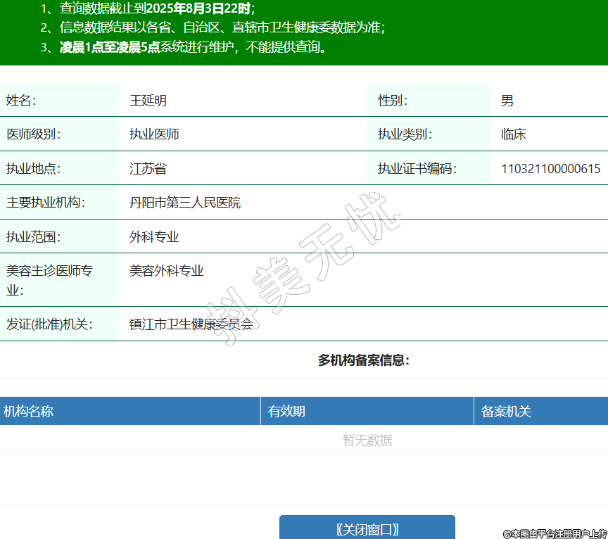姓名:王延明性別:男醫(yī)師級(jí)別:執(zhí)業(yè)醫(yī)師執(zhí)業(yè)類別:臨床執(zhí)業(yè)地點(diǎn):江蘇省執(zhí)業(yè)證書編碼:110321100000615主要執(zhí)業(yè)機(jī)構(gòu):丹陽市第三人民醫(yī)院執(zhí)業(yè)范圍:外科專業(yè)美容主診醫(yī)師專業(yè):美容外科專業(yè)發(fā)證(批準(zhǔn))機(jī)關(guān):鎮(zhèn)江市衛(wèi)生健康委員會(huì) -