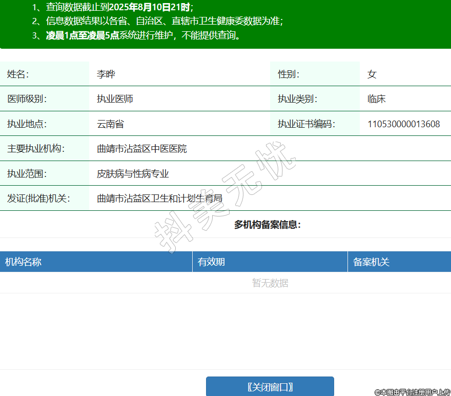 姓名:李曄性別:女醫(yī)師級別:執(zhí)業(yè)醫(yī)師執(zhí)業(yè)類別:臨床執(zhí)業(yè)地點:云南省執(zhí)業(yè)證書編碼:110530000013608主要執(zhí)業(yè)機構:曲靖市沾益區(qū)中醫(yī)醫(yī)院執(zhí)業(yè)范圍:皮膚病與性病專業(yè)發(fā)證(批準)機關:曲靖市沾益區(qū)衛(wèi)生和計劃生育局 姓名:李曄性別:女醫(yī)師級別:執(zhí)業(yè)醫(yī)師執(zhí)業(yè)類別:臨床執(zhí)業(yè)地點:云南省執(zhí)業(yè)證書編碼:110530000013608主要執(zhí)業(yè)機構:曲靖市沾益區(qū)中醫(yī)醫(yī)院執(zhí)業(yè)范圍:皮膚病與性病專業(yè)發(fā)證(批準)機關:曲靖市沾益區(qū)衛(wèi)生和計劃生育局