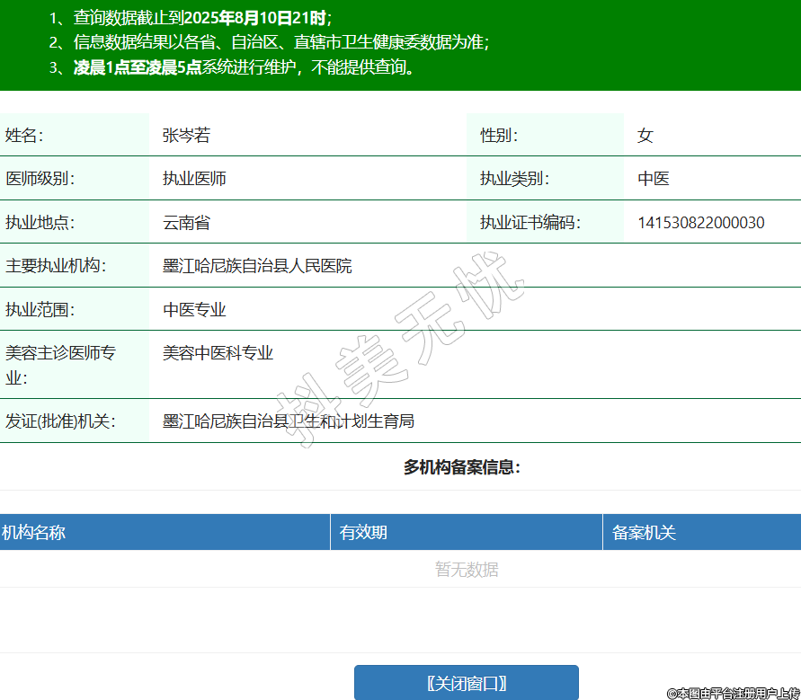 姓名:張岑若性別:女醫(yī)師級別:執(zhí)業(yè)醫(yī)師執(zhí)業(yè)類別:中醫(yī)執(zhí)業(yè)地點:云南省執(zhí)業(yè)證書編碼:141530822000030主要執(zhí)業(yè)機構:墨江哈尼族自治縣人民醫(yī)院執(zhí)業(yè)范圍:中醫(yī)專業(yè)美容主診醫(yī)師專業(yè):美容中醫(yī)科專業(yè)發(fā)證(批準)機關:墨江哈尼族自治縣衛(wèi)生和計劃生育局 -