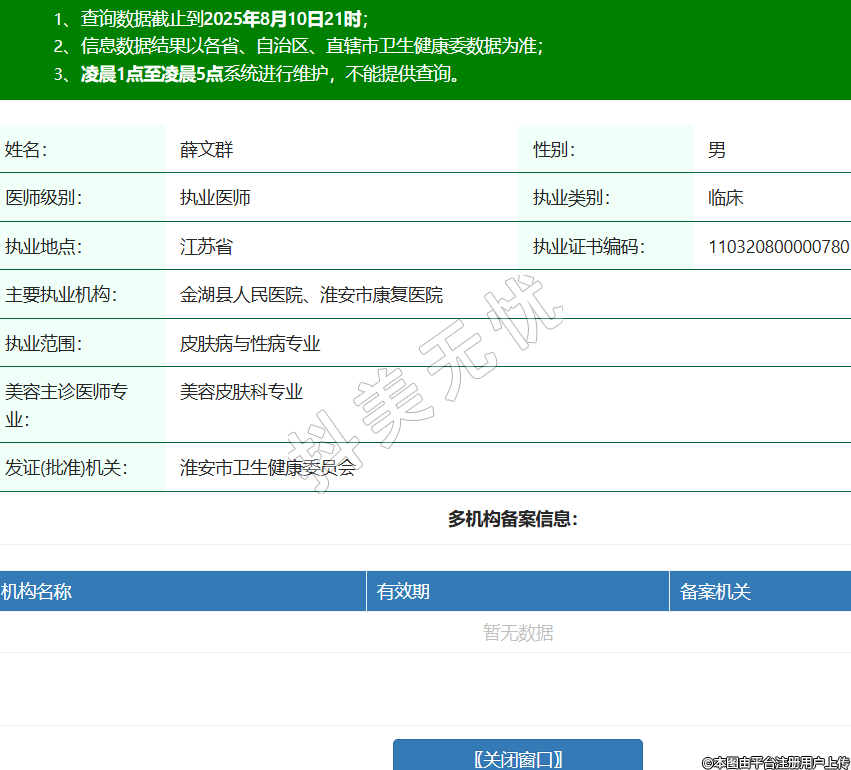 姓名:薛文群性別:男醫(yī)師級(jí)別:執(zhí)業(yè)醫(yī)師執(zhí)業(yè)類別:臨床執(zhí)業(yè)地點(diǎn):江蘇省執(zhí)業(yè)證書編碼:110320800000780主要執(zhí)業(yè)機(jī)構(gòu):金湖縣人民醫(yī)院、淮安市康復(fù)醫(yī)院執(zhí)業(yè)范圍:皮膚病與性病專業(yè)美容主診醫(yī)師專業(yè):美容皮膚科專業(yè)發(fā)證(批準(zhǔn))機(jī)關(guān):淮安市衛(wèi)生健康委員會(huì) -