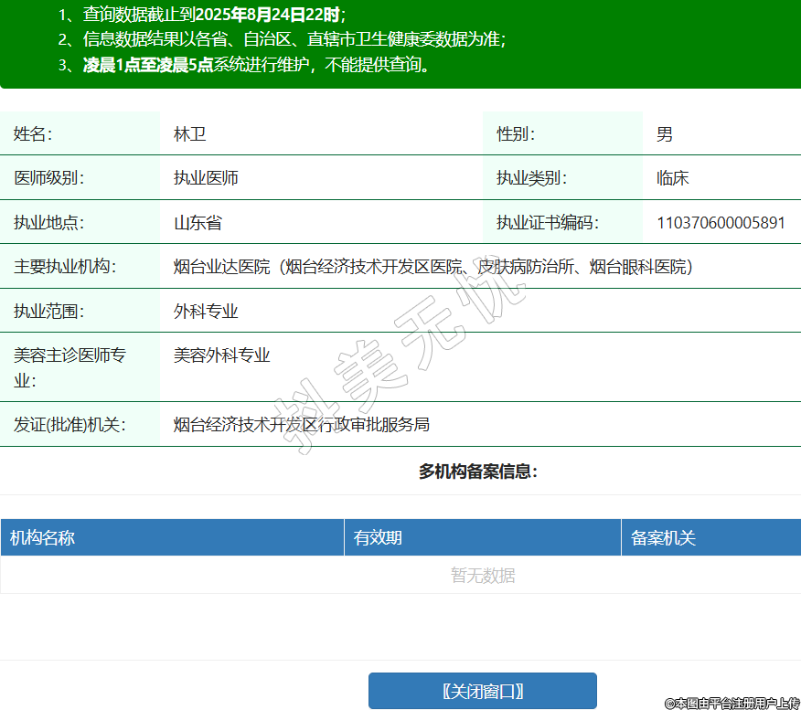 姓名:林衛(wèi)性別:男醫(yī)師級別:執(zhí)業(yè)醫(yī)師執(zhí)業(yè)類別:臨床執(zhí)業(yè)地點(diǎn):山東省執(zhí)業(yè)證書編碼:110370600005891主要執(zhí)業(yè)機(jī)構(gòu):煙臺業(yè)達(dá)醫(yī)院(煙臺經(jīng)濟(jì)技術(shù)開發(fā)區(qū)醫(yī)院、皮膚病防治所、煙臺眼科醫(yī)院)執(zhí)業(yè)范圍:外科專業(yè)美容主診醫(yī)師專業(yè):美容外科專業(yè)發(fā)證(批準(zhǔn))機(jī)關(guān):煙臺經(jīng)濟(jì)技術(shù)開發(fā)區(qū)行政審批服務(wù)局