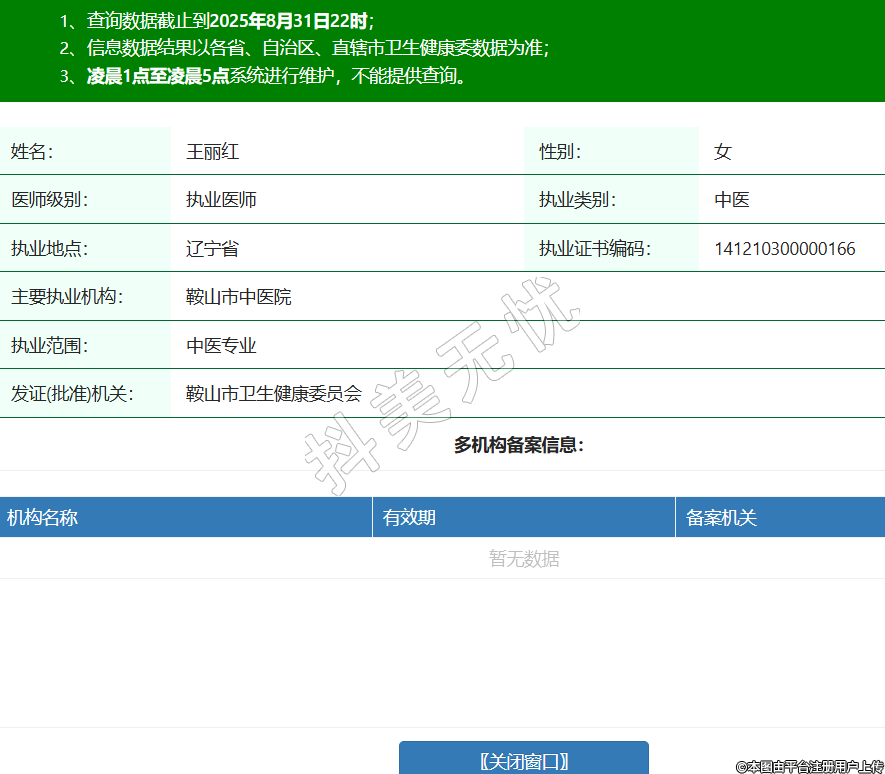 姓名:王麗紅性別:女醫(yī)師級(jí)別:執(zhí)業(yè)醫(yī)師執(zhí)業(yè)類別:中醫(yī)執(zhí)業(yè)地點(diǎn):遼寧省執(zhí)業(yè)證書編碼:141210300000166主要執(zhí)業(yè)機(jī)構(gòu):鞍山市中醫(yī)院執(zhí)業(yè)范圍:中醫(yī)專業(yè)發(fā)證(批準(zhǔn))機(jī)關(guān):鞍山市衛(wèi)生健康委員會(huì) -