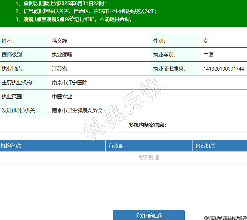 姓名:徐文靜性別:女醫(yī)師級別:執(zhí)業(yè)醫(yī)師執(zhí)業(yè)類別:中醫(yī)執(zhí)業(yè)地點(diǎn):江蘇省執(zhí)業(yè)證書編碼:141320100001744主要執(zhí)業(yè)機(jī)構(gòu):南京市江寧醫(yī)院執(zhí)業(yè)范圍:中醫(yī)專業(yè)發(fā)證(批準(zhǔn))機(jī)關(guān):南京市衛(wèi)生健康委員會