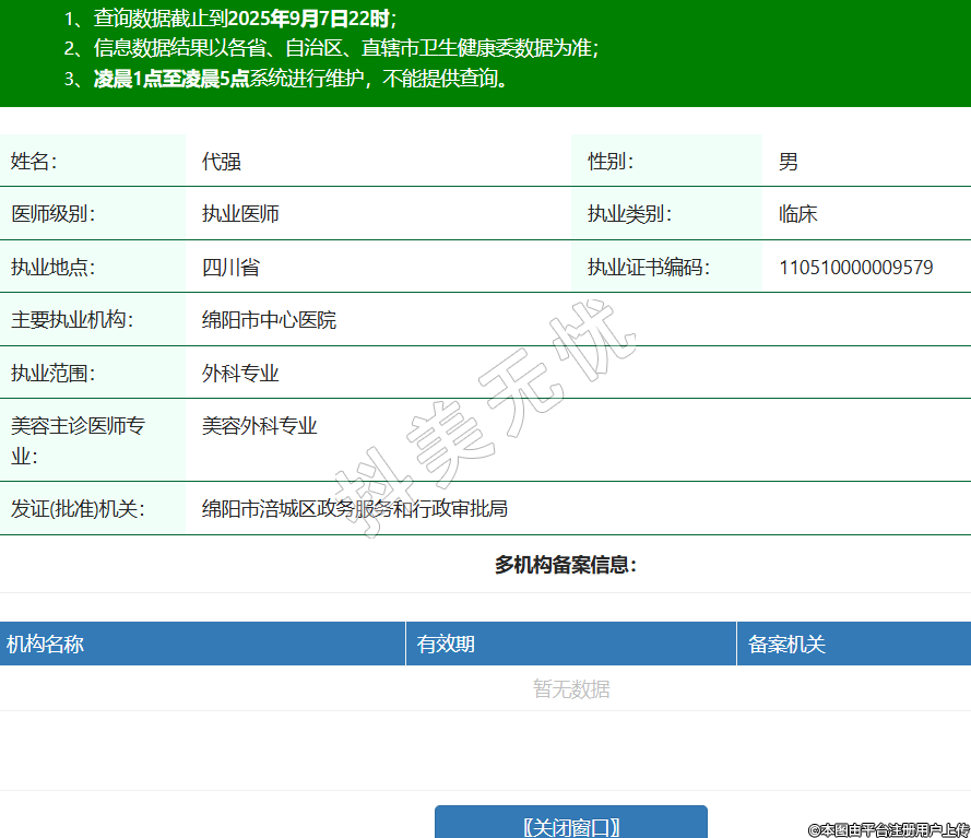 姓名:代強(qiáng)性別:男醫(yī)師級別:執(zhí)業(yè)醫(yī)師執(zhí)業(yè)類別:臨床執(zhí)業(yè)地點:四川省執(zhí)業(yè)證書編碼:110510000009579主要執(zhí)業(yè)機(jī)構(gòu):綿陽市中心醫(yī)院執(zhí)業(yè)范圍:外科專業(yè)美容主診醫(yī)師專業(yè):美容外科專業(yè)發(fā)證(批準(zhǔn))機(jī)關(guān):綿陽市涪城區(qū)政務(wù)服務(wù)和行政審批局