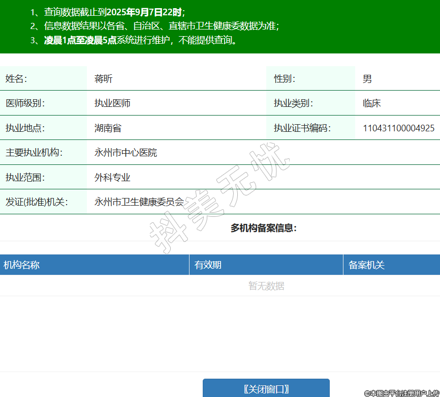 姓名:蔣昕性別:男醫(yī)師級別:執(zhí)業(yè)醫(yī)師執(zhí)業(yè)類別:臨床執(zhí)業(yè)地點:湖南省執(zhí)業(yè)證書編碼:110431100004925主要執(zhí)業(yè)機構:永州市中心醫(yī)院執(zhí)業(yè)范圍:外科專業(yè)發(fā)證(批準)機關:永州市衛(wèi)生健康委員會 -