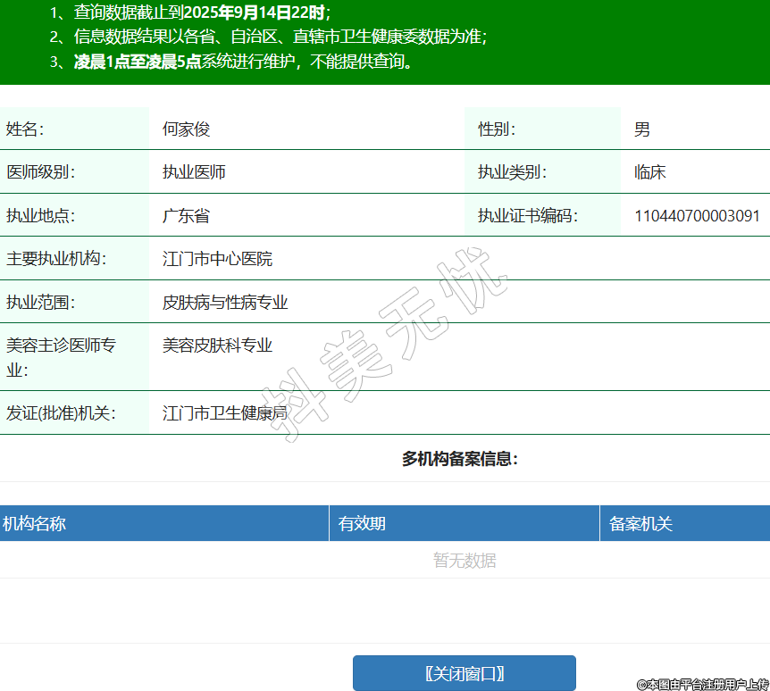 姓名:何家俊性別:男醫(yī)師級別:執(zhí)業(yè)醫(yī)師執(zhí)業(yè)類別:臨床執(zhí)業(yè)地點:廣東省執(zhí)業(yè)證書編碼:110440700003091主要執(zhí)業(yè)機構(gòu):江門市中心醫(yī)院執(zhí)業(yè)范圍:皮膚病與性病專業(yè)美容主診醫(yī)師專業(yè):美容皮膚科專業(yè)發(fā)證(批準)機關(guān):江門市衛(wèi)生健康局 -