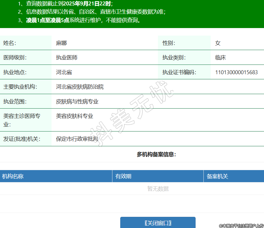 姓名:麻娜性別:女醫(yī)師級(jí)別:執(zhí)業(yè)醫(yī)師執(zhí)業(yè)類別:臨床執(zhí)業(yè)地點(diǎn):河北省執(zhí)業(yè)證書編碼:110130000015683主要執(zhí)業(yè)機(jī)構(gòu):河北省皮膚病防治院執(zhí)業(yè)范圍:皮膚病與性病專業(yè)美容主診醫(yī)師專業(yè):美容皮膚科專業(yè)發(fā)證(批準(zhǔn))機(jī)關(guān):保定市行政審批局 -