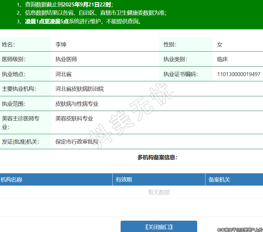姓名:李坤性別:女醫(yī)師級(jí)別:執(zhí)業(yè)醫(yī)師執(zhí)業(yè)類別:臨床執(zhí)業(yè)地點(diǎn):河北省執(zhí)業(yè)證書編碼:110130000019497主要執(zhí)業(yè)機(jī)構(gòu):河北省皮膚病防治院執(zhí)業(yè)范圍:皮膚病與性病專業(yè)美容主診醫(yī)師專業(yè):美容皮膚科專業(yè)發(fā)證(批準(zhǔn))機(jī)關(guān):保定市行政審批局 -