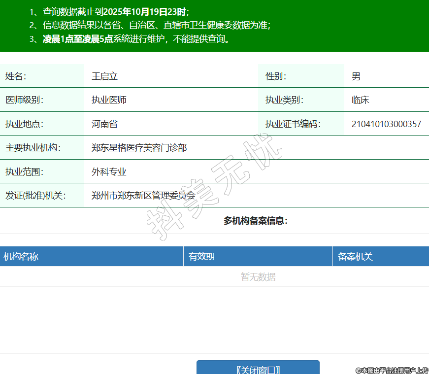 姓名:王啟立性別:男醫(yī)師級別:執(zhí)業(yè)醫(yī)師執(zhí)業(yè)類別:臨床執(zhí)業(yè)地點:河南省執(zhí)業(yè)證書編碼:210410103000357主要執(zhí)業(yè)機(jī)構(gòu):鄭東星格醫(yī)療美容門診部執(zhí)業(yè)范圍:外科專業(yè)發(fā)證(批準(zhǔn))機(jī)關(guān):鄭州市鄭東新區(qū)管理委員會 -