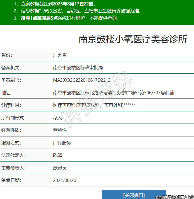省份:江蘇省備案機關(guān):南京市鼓樓區(qū)行政審批局備案編號:MA20X32G232010617D2212地址:南京市鼓樓區(qū)江東北路88號清江蘇寧廣場5F第506/507號商鋪診療科目:醫(yī)療美容科(美容皮膚科,美容外科)******所有制形式:私人經(jīng)營性質(zhì):營利性服務方式:門診服務法定代表人:陳靖主要負責人:龐靈靈備案日期:2024/08/20 -