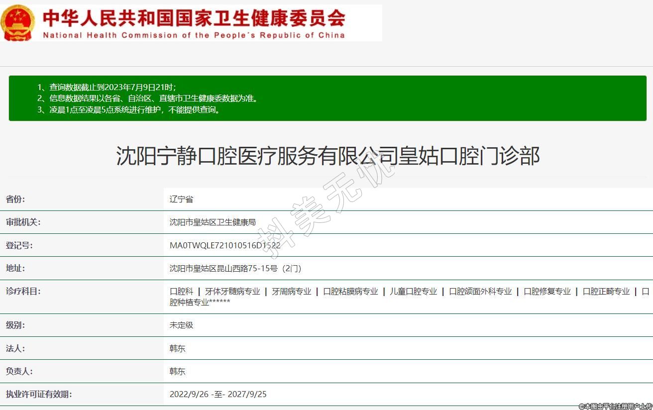 沈陽(yáng)寧?kù)o口腔醫(yī)療服務(wù)有限公司皇姑口腔門診部