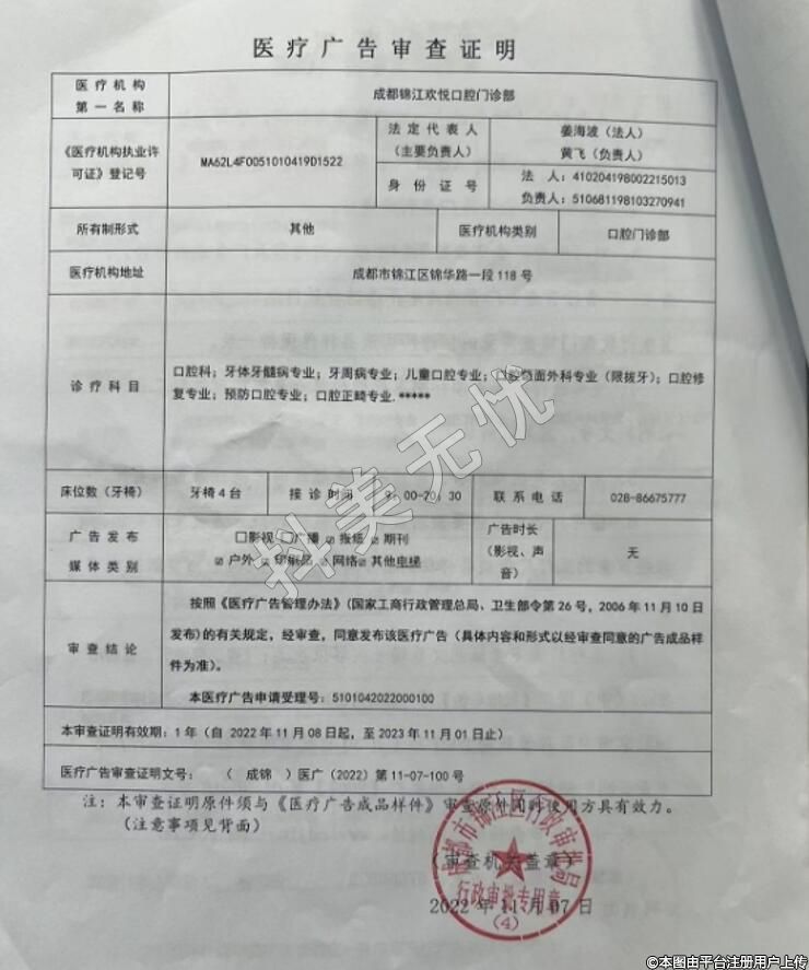 機構(gòu)名稱:成都錦江歡悅口腔門診部