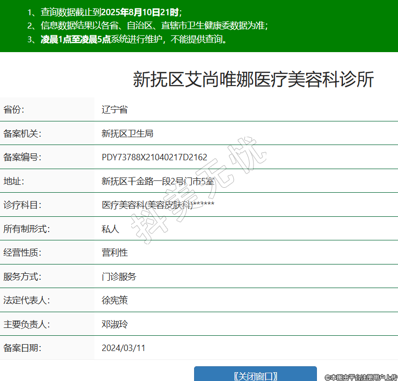 省份:遼寧省備案機關(guān):新?lián)釁^(qū)衛(wèi)生局備案編號:PDY73788X21040217D2162地址:新?lián)釁^(qū)千金路一段2號門市5室診療科目:醫(yī)療美容科(美容皮膚科)******所有制形式:私人經(jīng)營性質(zhì):營利性服務(wù)方式:門診服務(wù)法定代表人:徐憲策主要負責人:鄧淑玲備案日期:2024/03/11 -