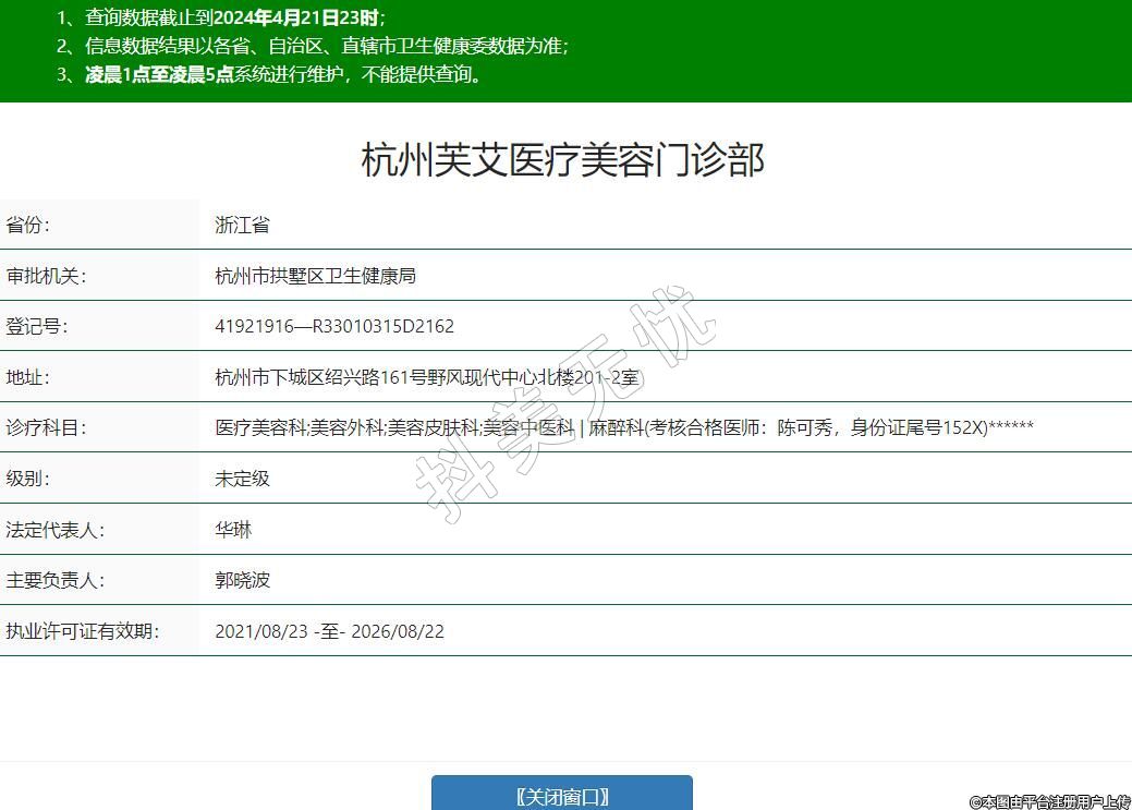 醫(yī)療美容科;美容外科;美容皮膚科;美容中醫(yī)科 | 麻醉科(考核合格醫(yī)師:陳可秀,身份證尾號(hào)152X)******