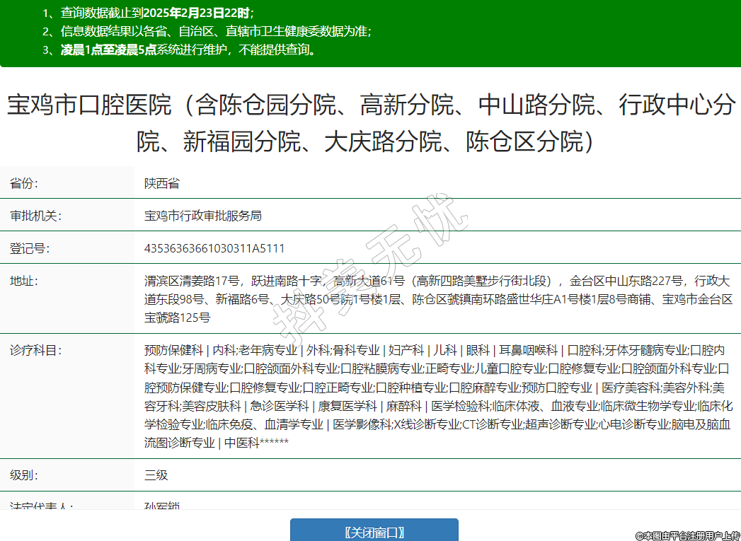 寶雞市口腔醫(yī)院(含陳倉(cāng)園分院、高新分院、中山路分院、行政中心分院、新福園分院、大慶路分院、陳倉(cāng)區(qū)分院)