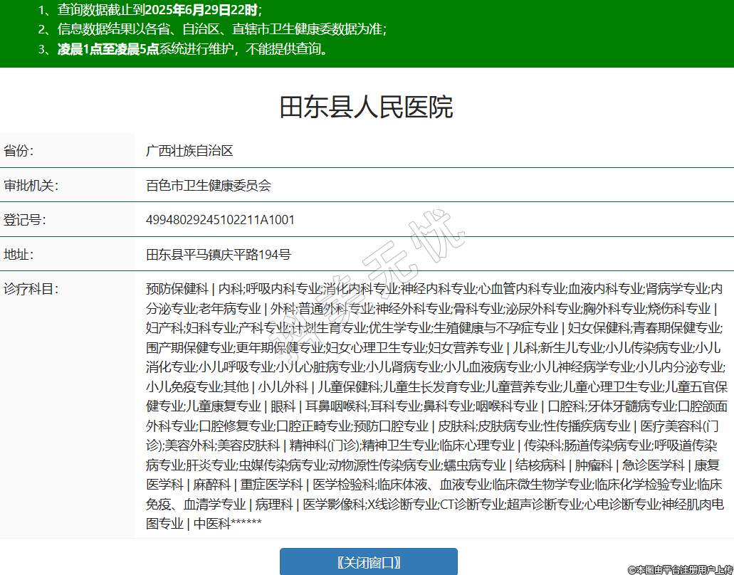 省份:廣西壯族自治區(qū)審批機(jī)關(guān):百色市衛(wèi)生健康委員會(huì)登記號:49948029245102211A1001地址:田東縣平馬鎮(zhèn)慶平路194號診療科目:預(yù)防保健科 | 內(nèi)科;呼吸內(nèi)科專業(yè);消化內(nèi)科專業(yè);神經(jīng)內(nèi)科專業(yè);心血管內(nèi)科專業(yè);血液內(nèi)科專業(yè);腎病學(xué)專業(yè);內(nèi)分泌專業(yè);老年病專業(yè) | 外科;普通外科專業(yè);神經(jīng)外科專業(yè);骨科專業(yè);泌尿外科專業(yè);胸外科專業(yè);燒傷科專業(yè) | 婦產(chǎn)科;婦科專業(yè);產(chǎn)科專業(yè);計(jì)劃生育專業(yè);優(yōu)生學(xué)專業(yè);生殖健康與不孕癥專業(yè) | 婦女保健科;青春期保健專業(yè);圍產(chǎn)期保健專業(yè);更年期保健專業(yè);婦女心理衛(wèi)生專業(yè);婦女營養(yǎng)專業(yè) | 兒科;新生兒專業(yè);小兒傳染病專業(yè);小兒消化專業(yè);小兒呼吸專業(yè);小兒心臟病專業(yè);小兒腎病專業(yè);小兒血液病專業(yè);小兒神經(jīng)病學(xué)專業(yè);小兒內(nèi)分泌專業(yè);小兒免疫專業(yè);其他 | 小兒外科 | 兒童保健科;兒童生長發(fā)育專業(yè);兒童營養(yǎng)專業(yè);兒童心理衛(wèi)生專業(yè);兒童五官保健專業(yè);兒童康復(fù)專業(yè) | 眼科 | 耳鼻咽喉科;耳科專業(yè);鼻科專業(yè);咽喉科專業(yè) | 口腔科;牙體牙髓病專業(yè);口腔頜面外科專業(yè);口腔修復(fù)專業(yè);口腔正畸專業(yè);預(yù)防口腔專業(yè) | 皮膚科;皮膚病專業(yè);性傳播疾病專業(yè) | 醫(yī)療美容科(門診);美容外科;美容皮膚科 | 精神科(門診);精神衛(wèi)生專業(yè);臨床心理專業(yè) | 傳染科;腸道傳染病專業(yè);呼吸道傳染病專業(yè);肝炎專業(yè);蟲媒傳染病專業(yè);動(dòng)物源性傳染病專業(yè);蠕蟲病專業(yè) | 結(jié)核病科 | 腫瘤科 | 急診醫(yī)學(xué)科 | 康復(fù)醫(yī)學(xué)科 | 麻醉科 | 重癥醫(yī)學(xué)科 | 醫(yī)學(xué)檢驗(yàn)科;臨床體液、血液專業(yè);臨床微生物學(xué)專業(yè);臨床化學(xué)檢驗(yàn)專業(yè);臨床免疫、血清學(xué)專業(yè) | 病理科 | 醫(yī)學(xué)影像科;X線診斷專業(yè);CT診斷專業(yè);超聲診斷專業(yè);心電診斷專業(yè);神經(jīng)肌肉電圖專業(yè) | 中醫(yī)科******級別:二級法定代表人:黃仁勇主要負(fù)責(zé)人:黃仁勇執(zhí)業(yè)許可證有效期:2022/12/23 -至- 2025/12/22 -