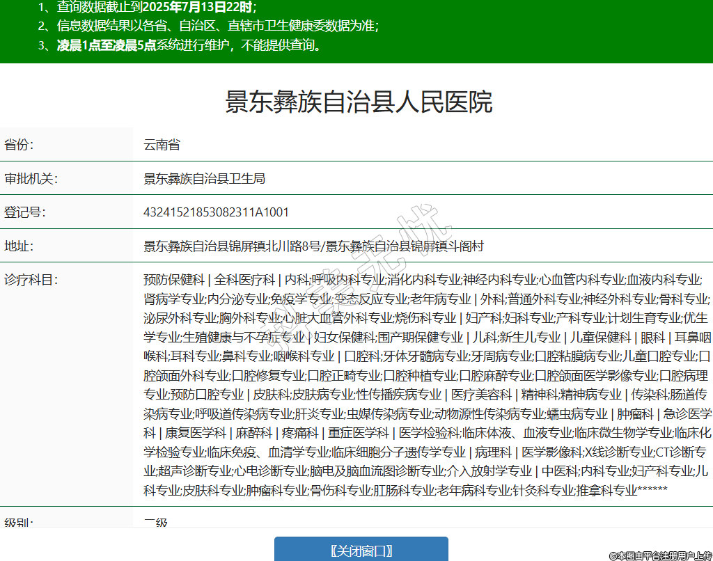 景東彝族自治縣人民醫(yī)院省份:云南省審批機關:景東彝族自治縣衛(wèi)生局登記號:43241521853082311A1001地址:景東彝族自治縣錦屏鎮(zhèn)北川路8號/景東彝族自治縣錦屏鎮(zhèn)斗閣村診療科目:預防保健科 | 全科醫(yī)療科 | 內(nèi)科;呼吸內(nèi)科專業(yè);消化內(nèi)科專業(yè);神經(jīng)內(nèi)科專業(yè);心血管內(nèi)科專業(yè);血液內(nèi)科專業(yè);腎病學專業(yè);內(nèi)分泌專業(yè);免疫學專業(yè);變態(tài)反應專業(yè);老年病專業(yè) | 外科;普通外科專業(yè);神經(jīng)外科專業(yè);骨科專業(yè);泌尿外科專業(yè);胸外科專業(yè);心臟大血管外科專業(yè);燒傷科專業(yè) | 婦產(chǎn)科;婦科專業(yè);產(chǎn)科專業(yè);計劃生育專業(yè);優(yōu)生學專業(yè);生殖健康與不孕癥專業(yè) | 婦女保健科;圍產(chǎn)期保健專業(yè) | 兒科;新生兒專業(yè) | 兒童保健科 | 眼科 | 耳鼻咽喉科;耳科專業(yè);鼻科專業(yè);咽喉科專業(yè) | 口腔科;牙體牙髓病專業(yè);牙周病專業(yè);口腔粘膜病專業(yè);兒童口腔專業(yè);口腔頜面外科專業(yè);口腔修復專業(yè);口腔正畸專業(yè);口腔種植專業(yè);口腔麻醉專業(yè);口腔頜面醫(yī)學影像專業(yè);口腔病理專業(yè);預防口腔專業(yè) | 皮膚科;皮膚病專業(yè);性傳播疾病專業(yè) | 醫(yī)療美容科 | 精神科;精神病專業(yè) | 傳染科;腸道傳染病專業(yè);呼吸道傳染病專業(yè);肝炎專業(yè);蟲媒傳染病專業(yè);動物源性傳染病專業(yè);蠕蟲病專業(yè) | 腫瘤科 | 急診醫(yī)學科 | 康復醫(yī)學科 | 麻醉科 | 疼痛科 | 重癥醫(yī)學科 | 醫(yī)學檢驗科;臨床體液、血液專業(yè);臨床微生物學專業(yè);臨床化學檢驗專業(yè);臨床免疫、血清學專業(yè);臨床細胞分子遺傳學專業(yè) | 病理科 | 醫(yī)學影像科;X線診斷專業(yè);CT診斷專業(yè);超聲診斷專業(yè);心電診斷專業(yè);腦電及腦血流圖診斷專業(yè);介入放射學專業(yè) | 中醫(yī)科;內(nèi)科專業(yè);婦產(chǎn)科專業(yè);兒科專業(yè);皮膚科專業(yè);腫瘤科專業(yè);骨傷科專業(yè);肛腸科專業(yè);老年病科專業(yè);針灸科專業(yè);推拿科專業(yè)******級別:二級法定代表人:馮周亮主要負責人:馮周亮執(zhí)業(yè)許可證有效期:2010/08/22 -至- 2025/08/21