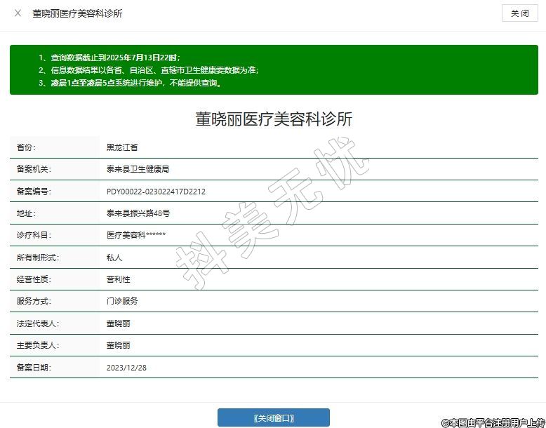 泰來董曉麗醫(yī)療美容科診所(曾用名:泰來縣董曉麗醫(yī)療美容科診所)成立于2019年,位于齊齊哈爾市泰來縣中興花園小區(qū)廂樓商服北數(shù)30號(振興路48號)。診所專注于醫(yī)療美容服務(wù),由專業(yè)醫(yī)護(hù)團(tuán)隊(duì)提供安全、規(guī)范的醫(yī)療美容診療項(xiàng)目。我們以求美者的需求為核心,注重細(xì)節(jié)與個(gè)性化方案,幫助改善肌膚狀態(tài),提升整體美感。診所環(huán)境整潔舒適,嚴(yán)格遵循醫(yī)療標(biāo)準(zhǔn),確保操作安全可靠,致力于為顧客提供自然、協(xié)調(diào)的醫(yī)美體驗(yàn),助力展現(xiàn)自信魅力。