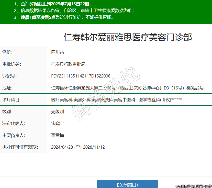 仁壽韓爾愛麗雅思醫(yī)療美容門診部