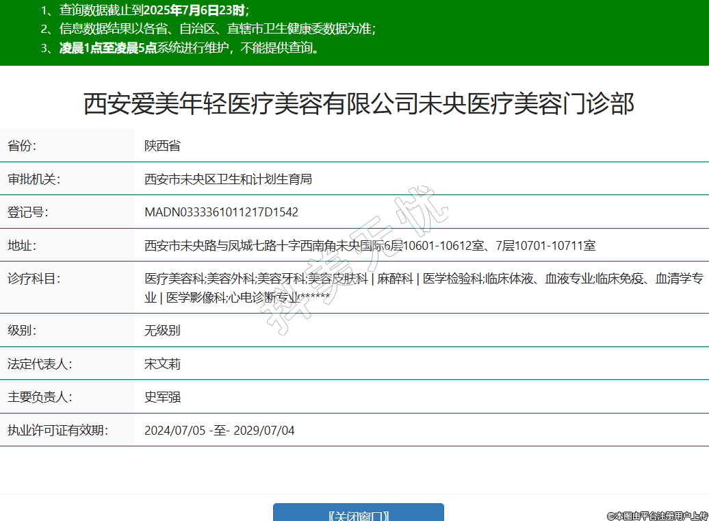 西安愛美年輕醫(yī)療美容有限公司未央醫(yī)療美容門診部