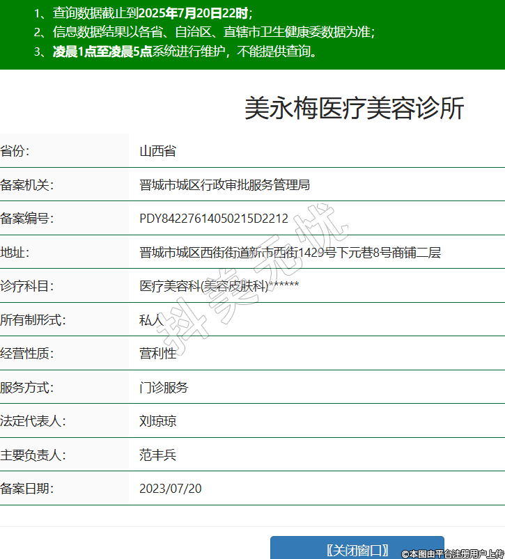 省份:山西省備案機關:晉城市城區(qū)行政審批服務管理局備案編號:PDY84227614050215D2212地址:晉城市城區(qū)西街街道新市西街1429號下元巷8號商鋪二層診療科目:醫(yī)療美容科(美容皮膚科)******所有制形式:私人經營性質:營利性服務方式:門診服務法定代表人:劉瓊瓊主要負責人:范豐兵備案日期:2023/07/20 -