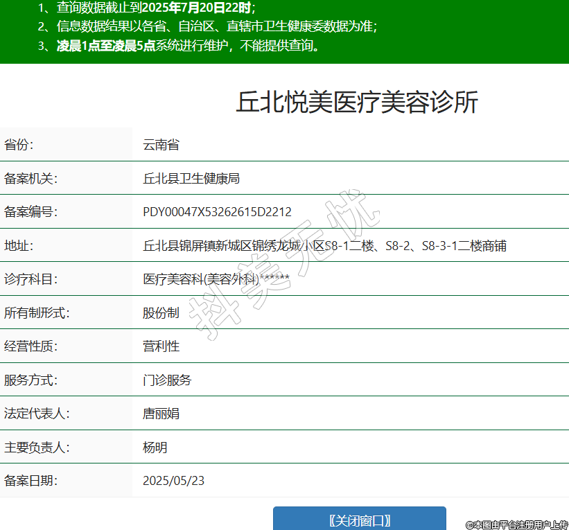丘北悅美醫(yī)療美容診所,診療科目:醫(yī)療美容科(美容外科)******