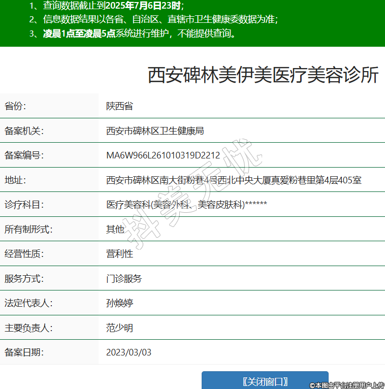 省份:陜西省備案機(jī)關(guān):西安市碑林區(qū)衛(wèi)生健康局備案編號:MA6W966L261010319D2212地址:西安市碑林區(qū)南大街粉巷4號西北中央大廈真愛粉巷里第4層405室診療科目:醫(yī)療美容科(美容外科、美容皮膚科)******所有制形式:其他經(jīng)營性質(zhì):營利性服務(wù)方式:門診服務(wù)法定代表人:孫煥婷主要負(fù)責(zé)人:范少明備案日期:2023/03/03 -