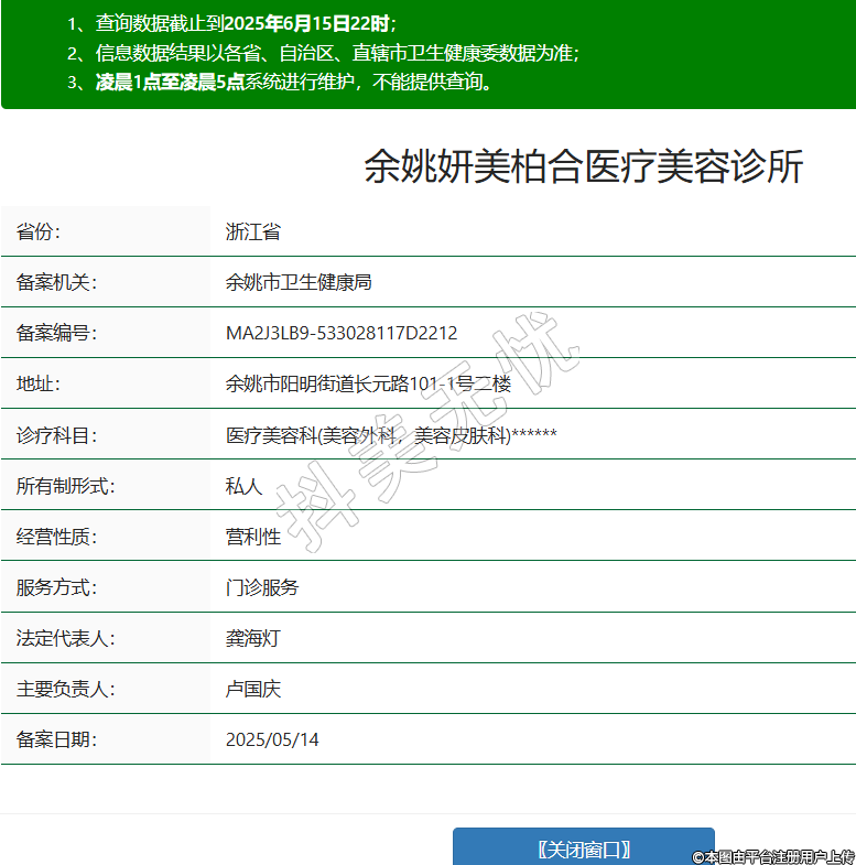 省份:浙江省備案機(jī)關(guān):余姚市衛(wèi)生健康局備案編號(hào):MA2J3LB9-533028117D2212地址:余姚市陽明街道長元路101-1號(hào)二樓診療科目:醫(yī)療美容科(美容外科,美容皮膚科)******所有制形式:私人經(jīng)營性質(zhì):營利性服務(wù)方式:門診服務(wù)法定代表人:龔海燈主要負(fù)責(zé)人:盧國慶備案日期:2025/05/14 -