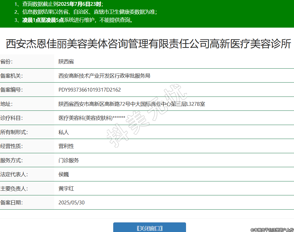 西安杰恩佳麗美容美體咨詢管理有限責(zé)任公司高新醫(yī)療美容診所,診療科目:醫(yī)療美容科(美容皮膚科)******