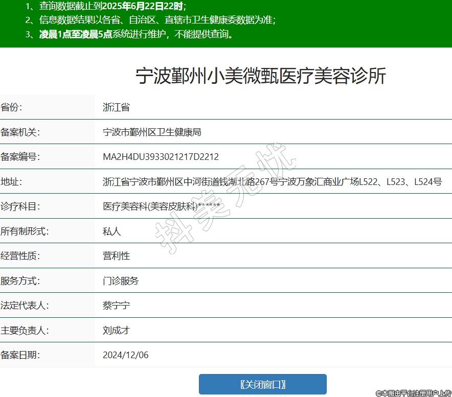 省份:浙江省備案機關(guān):寧波市鄞州區(qū)衛(wèi)生健康局備案編號:MA2H4DU3933021217D2212地址:浙江省寧波市鄞州區(qū)中河街道錢湖北路267號寧波萬象匯商業(yè)廣場L522、L523、L524號診療科目:醫(yī)療美容科(美容皮膚科)******所有制形式:私人經(jīng)營性質(zhì):營利性服務(wù)方式:門診服務(wù)法定代表人:蔡寧寧主要負責人:劉成才備案日期:2024/12/06 -