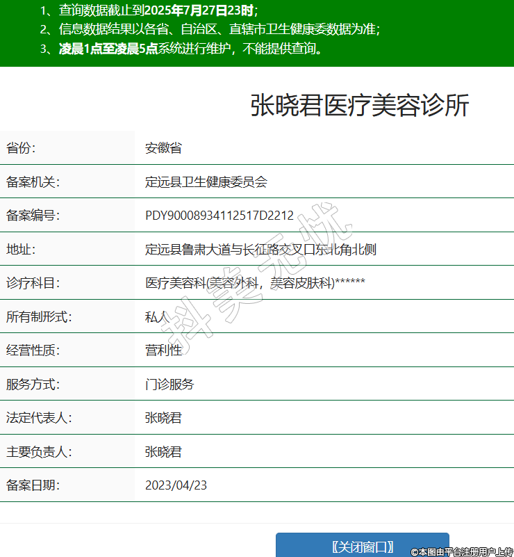 省份:安徽省備案機關(guān):定遠縣衛(wèi)生健康委員會備案編號:PDY90008934112517D2212地址:定遠縣魯肅大道與長征路交叉口東北角北側(cè)診療科目:醫(yī)療美容科(美容外科,美容皮膚科)******所有制形式:私人經(jīng)營性質(zhì):營利性服務(wù)方式:門診服務(wù)法定代表人:張曉君主要負責(zé)人:張曉君備案日期:2023/04/23 -
